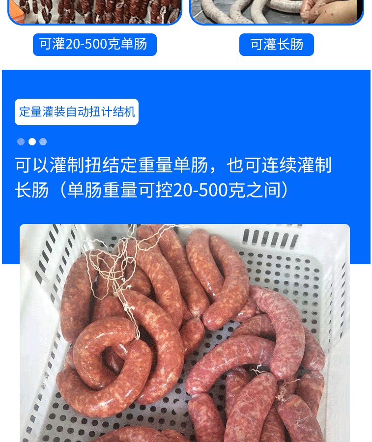 名稱自動紐結(jié)灌腸機 電源220V 功率0.5kw 產(chǎn)量100-500kg/h 尺寸 重量 規(guī)格 其他