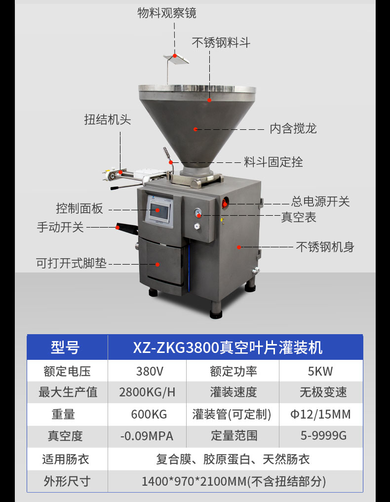 名稱XZ-ZKG2800真空葉片灌裝機 電源380v 功率3.8kw 產(chǎn)量最大值2800kg/h 尺寸680*610*1750mm 重量350kg 規(guī)格 其他
