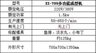 709多功能成型機新一代的多功能淡水丸機為魚肉制品成型設(shè)備,配合泵脯(供料機)使用,能生產(chǎn)出單色、包心及多色各種花式的品種,單色配一臺、兩種顏色配兩臺、三色配三臺。該機采用雙電機雙變頻設(shè)計,不單只是速度可調(diào),而且產(chǎn)品上的條紋旋度也可調(diào),使得做出的產(chǎn)品更多樣化,操作起來更方便。特別配備滾切刀,能生產(chǎn)出平口和圓口的淡水丸,具有一機多用的特點,可做產(chǎn)品:淡水丸、魚排、小布丁、鱈魚卷、蝦卷、蟹卷、烤魚棒、片片脆、鴛鴦片等火鍋料